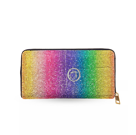 A Rainbow Crystal Rhinestone Wallet is a dazzling accessory, covered in multicolored rhinestones for a vibrant, sparkling effect. It combines functionality with style, featuring A compartment and a secure closure system.